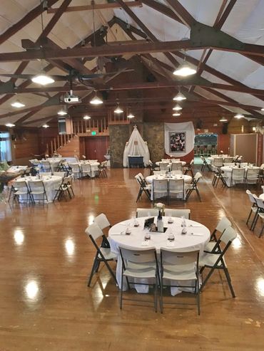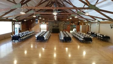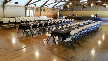 Included in the rental is use of the main hall with hard wood floors, a stage, a sound system, projector, free WI-FI and all tables and chairs, the Foyer, Patio and use of the commercial kitchen which includes a flat top, 6 burners, 6 ovens, dishwasher, 1 refrigerator and steam tables available, if needed.