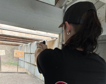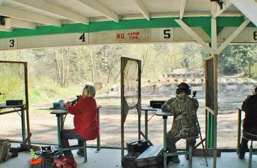 We recommend a minimum age of 12 years for shooting pistols, 5 years for rifles. However, regardless of age everyone MUST be able to impact the berms. Range Safety Officers are available for any further questions.